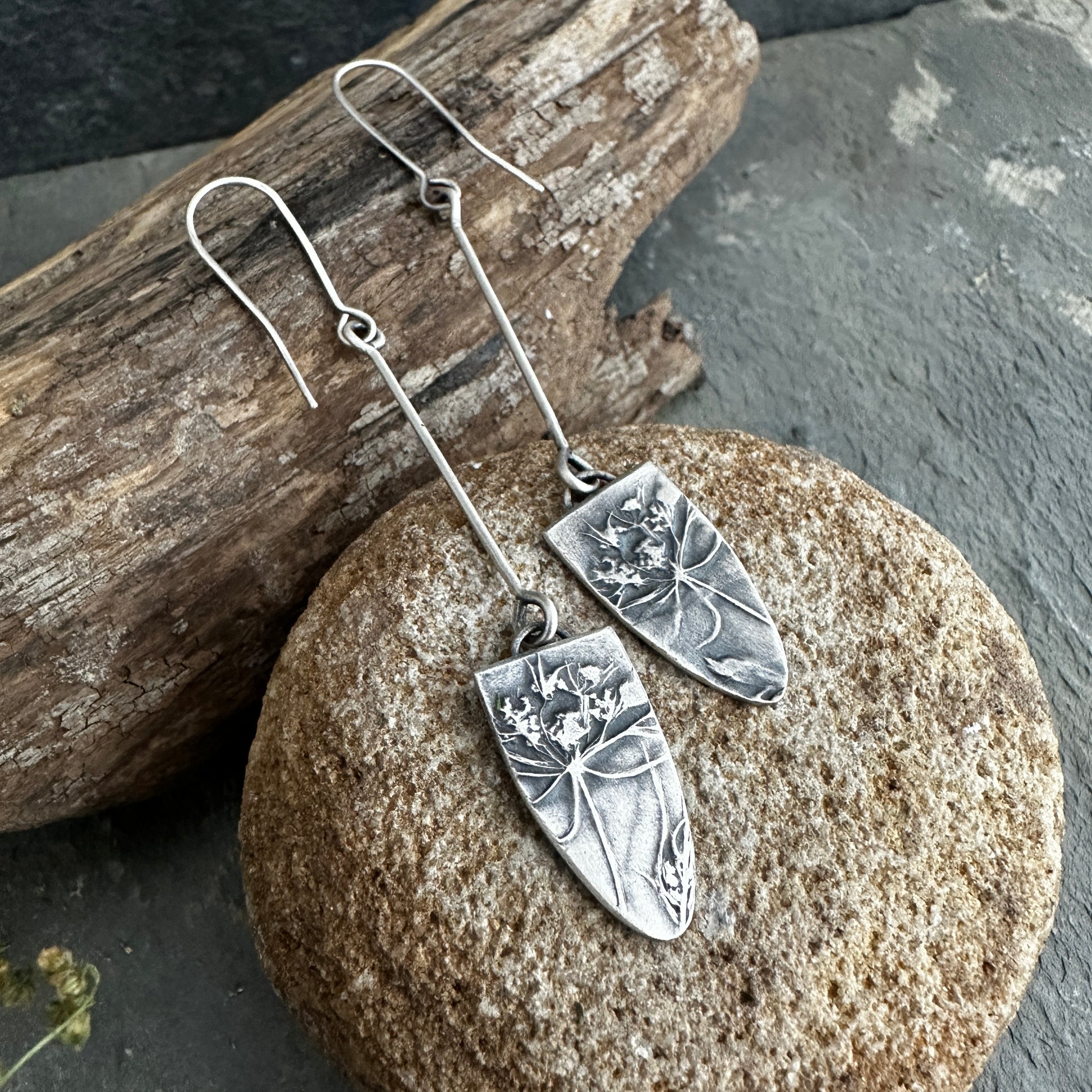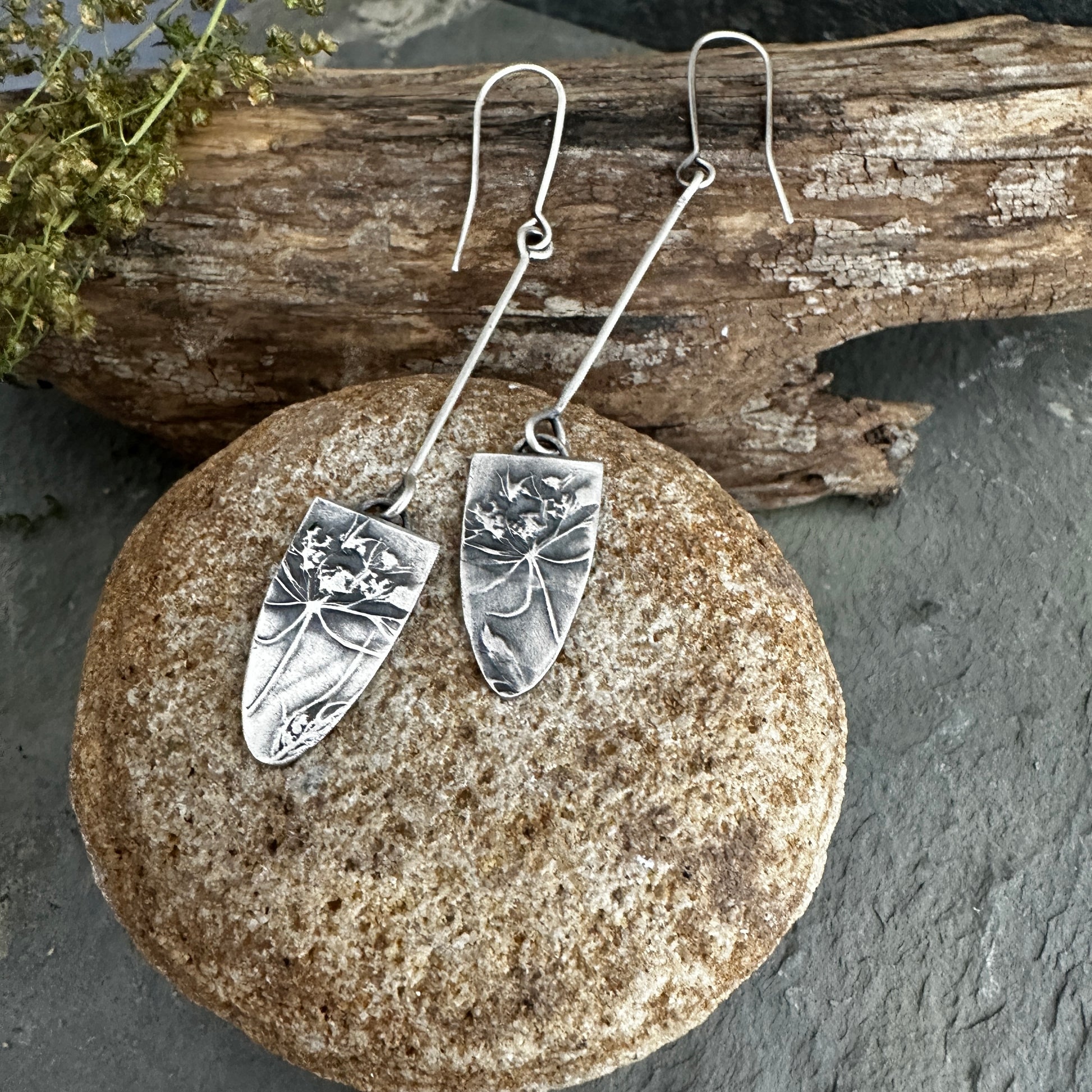 Queen Anne’s Lace is captured in sterling silver for these earrings.